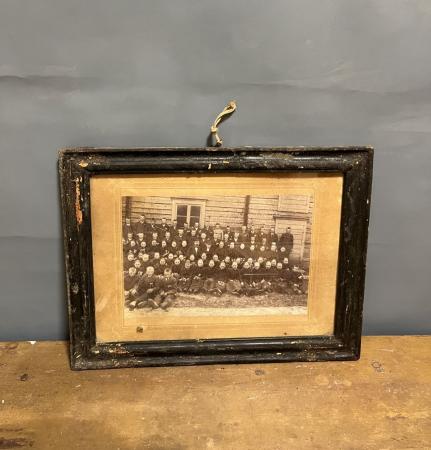 Konfirmationsfoto. Taget vid prästgårdens uthusrad. Prosten Karsten och kantor Hanelius finns i mitten på kortet. Cirka 1896, tillhört Anders Redlig.