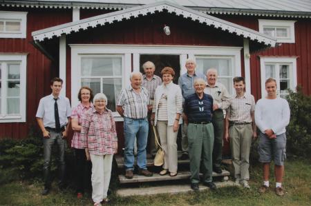 Dialektgruppen på utfärd till Mårtes museum i Björköby 2011. Vänster: Tages taxis chaufför, Maj-Britt Herrgård, Gunvor Knip, Harry Hjort, Erik Knip, Margareta Hjortman, Erik Hagberg, Gösta Ekman, Alf Svahn, Kristian Knip och guiden Kristian Sandström. Foto Mikael Herrgård.