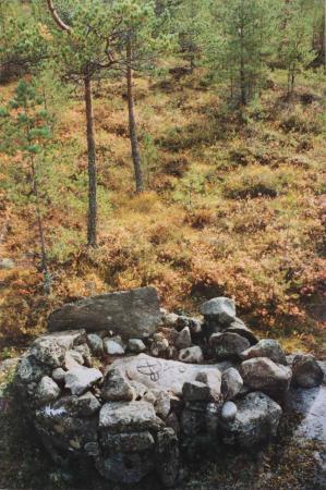 Hästmossröset (under restaurering) från 1725 visar med inhuggen ring väderstrecken N. S. Ö. V. Lantmätare Höjer. Foto Mikael Herrgård.