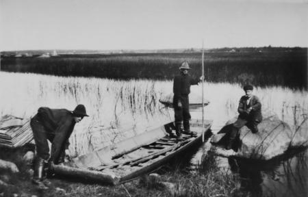 Kyro älv. Från vänster Albin Lövgård, Johannes Lövgård, Johannes Nyfors (Krigar).