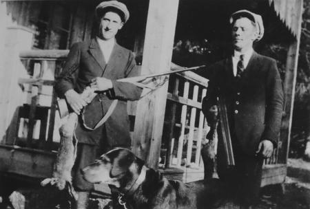 Till vänster Fritjof Hermansson med okänd jaktkamrat.