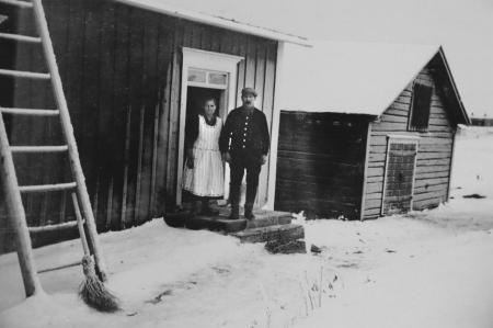 Matilda och Anders Redlig vid stugan på Funisbacken.