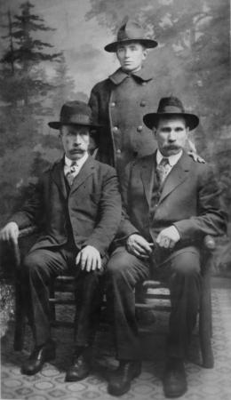 Bakom. Alfred Blomberg. Sittande till höger: Anders Redlig. Den tredje okänd.