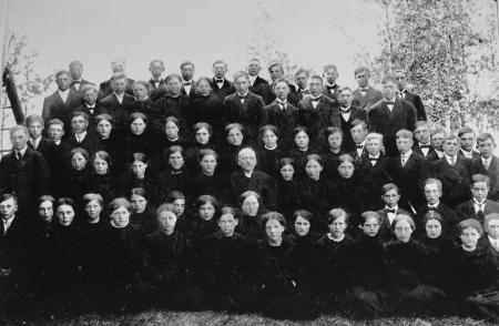 Skriftskolan i Kvevlax 1916. Kyrkoherde Evald Erland Hemmer. Identifierade: Ernst Ekholm, Johan Alfred Hildén, Arvid Sigfrid Hjort, Anders Evert Finell, Johannes Arvid Ahl, Johan Alfred Svanlund, Werner Nygård, Arvid Erik Jakobsson, Albert Ahlbäck, Werner Sundback, Elsa Maria Hägglund, Maria Irene Rönnkvist, Hilda Maria Blomberg, Hilma Maria Brännmark, Hilda Fredrika Östman, Edit Lustig, Elin Kast, Edit Ekholm, Elsa Lunelund.