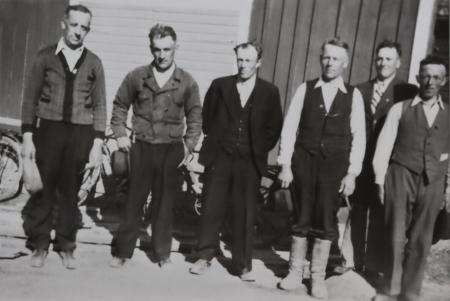 Från riksmarschen 1941. Vänster: Herman Holms, Arvid Jakobsson, Almer Hjort, Johannes Björkman, Ernst Ekholm och Gunnar Svahn.
