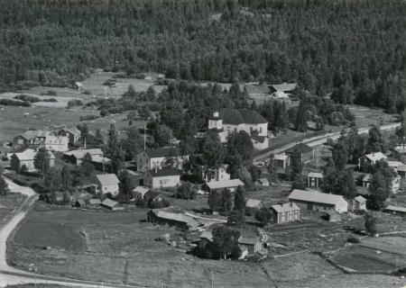 Kvevlax kyrkas omgivning 1960. Församlingshemmet längst till vänster.