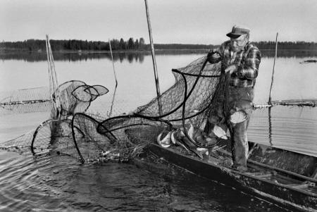 Arthur Ståhlberg från Österhankmo fiskar braxen i kyro älv våren 1982 vid Brändholmen i Vassor. Foto Mikael Herrgård.