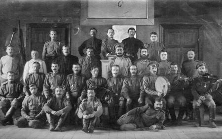De ryska soldaterna bevakade kustbyarna under ”förryskningen” när ryssarna skärpte greppet om Finland. Bilden är tagen 1917 i Missionshuset som ryssarna ockuperat. Soldaterna avväpnades av lokala aktivister 28 januari 1918.