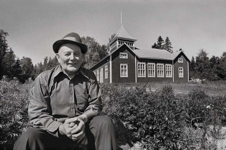 Gunnar Nygård (1904-1979) vid Österhankmo uf-lokal 1977. Gunnar var en känd profil i byn, uf-aktivist och mångsidigt verksam. Foto Mikael Herrgård.