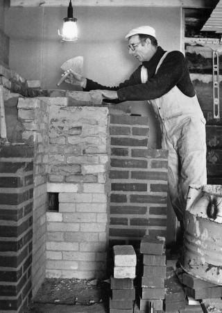Kurt Näsman från Västerhankmo, specialist på bla. öppna spisar i gammal stil. Bild från mitten av 1980-talet. Foto Mikael Herrgård.
