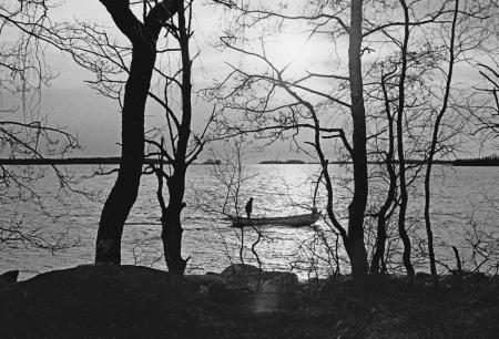 Johannes Lundberg (1895-1975) kör förbi Höggrund (södra Mickelsörarna) med "Lillbåten" 1971. Foto Mikael Herrgård.