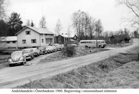 Kvevlax Andelshandels filial i Österhankmo (mittemot Missionshuset) fungerade som parkeringsplats under Hildur Finnes begravning 1960.