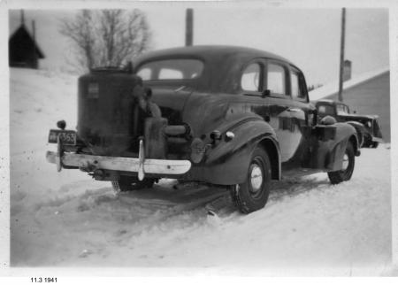 Bil med gengasanläggning 11.3 1941. Okänd plats.