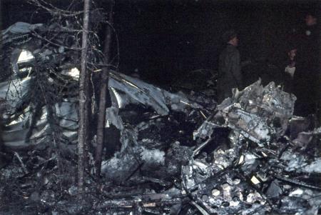 Tjugofem personer omkom när Aeros plan (DC 3) på väg från Kronoby till Vasa störtade i Kvevlax 3 januari 1961. Foto Börje Snickars.