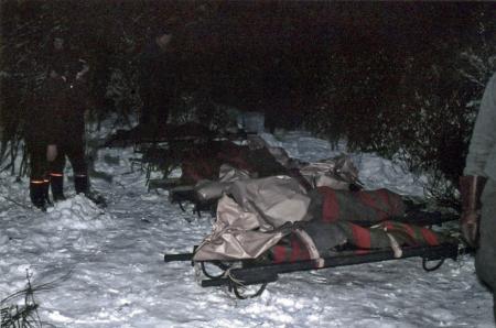 Tjugofem personer omkom när Aeros plan (DC 3) på väg från Kronoby till Vasa störtade i Kvevlax 3 januari 1961. Foto Börje Snickars.