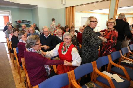 Kvevlax Hembygdsförenings 40-års fest 30. 9 2018 i Kvevlax församlingshem. Även avslappnande fysiska övningar hörde till festprogrammet. Foto Mikael Herrgård.