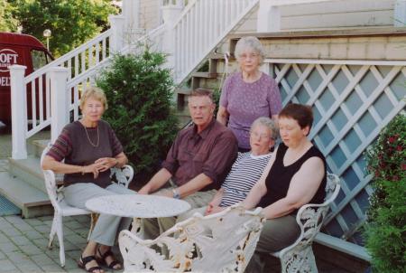 Herrgård (Herrkååli) i Ilmola. Karl Johan Herrgård (1845-1902) förvärvade Talvitie gård och byggde tillsammans med fru Aline (f. Wolff, 1849-1907) upp den nuvarande herrgården på 1890-talet. Bilden visar ett släktbesök från Amerika och Kvevlax 2004. Vänster: Agatha Sellin, Paul Sellin, Sally Herrgård, Gunnel Herrgård, Eva Åkerholm. Foto Alf Svahn.