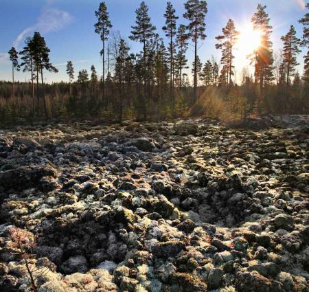 Fornminne, två av ett tjugotal fångstgropar på Knapulberget i Österhankmo. Fyndplatsen på 27,5 metersnivå bör tolkas som sälfångstläger några hundra år före Kristus. Foto Mikael Herrgård.