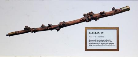 Åldermansstav från Kvevlax kyrkby. Bonden och Beckbrännaren Henrik Mattsson Wetterbom förärade år 1756 staven till byåldermannen. Foto Mikael Herrgård.