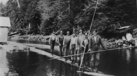 Flottningsarbete i Kanada på 1930-talet. Bilden sänt till Kvevlax av Teodor Lustig.