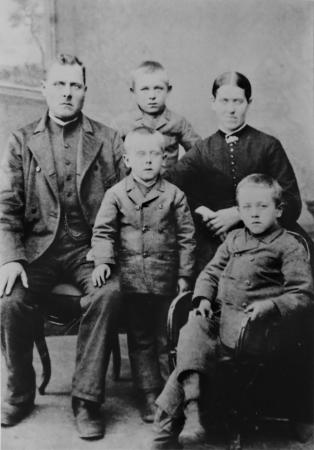 Johan-Erik (1851-1904) Knip och hustru Johanna (1848-1923). Barnen: Edvard bakom, Alfred i mitten, Isak-Erik till höger.
