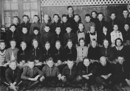 Kvevlax folkskola 1940-41, klasserna 3-5. Överst lärare Ernst Bäck och Ingeborg Brors. Översta raden, vänster: Ingmar Vesteråker, Klas Berg, Per-Ingmar Hjortman, Hilding Norrgård, Valfrid Häggblom, Sven Enroth, Sanfrid Burman, Edgar Jakobsson, Gösta Ekman, Rafael nygård, David Nyberg. Andra raden uppifrån: Ingmar Berg, Levi Berts, Bror Bergfors, Bengt Ahlbäck, John Nygård, Torsten Ahlskog, Ruth Nyman, Rode Bäckman, Sally Sederström, Rut Svarvén, Iris Svarvar. Tredje raden uppifrån: Elin Nygård, Inga Hjortman, Estrid Hurr, Marianne Söderblom, Guldi Hurr, Agnes Hjortman, Ingegerd Hjortman, Inga Strand, Inga Vahlbäck, Märta Almén, Emmi Hjort. Nedersta raden: Helge Nygård, John Westerholm, Per-Erik Hjortman, Herbert Hjortman, Hjalmar Knip, Sven kalander, Per Karlsson.