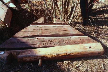 Inristat årtal på Hedströms stuga upptimrad 1878 i Karperö. Flyttad till Tranasbacken av Wilhelm Hedström. Se även bild 263-264.