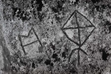 Bomärken från råröset (1751) mellan Kvevlax och Västerhankmo vid Påksholmen.