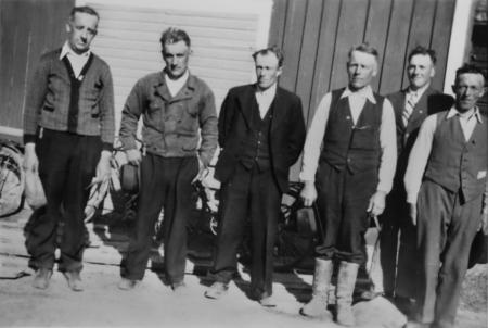 Från riksmarschen våren 1941. Från vänster: Herman Holms, Arvid Jakobsson, Almer Hjort, Johannes Björkman, Gunnar Svahn, Ernst Ekholm.