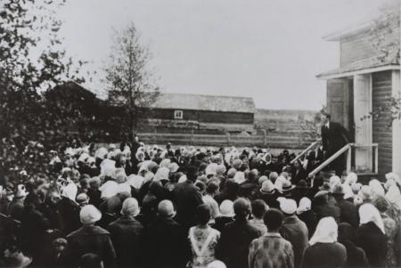 Vid en stor uppslutning 1929, när ÖSM ? firade högtid, predikade Frank Mangs på missionshusets trappa.