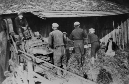 Tröskankalas vid Norrgårds rian i slutet av 1930-talet.
