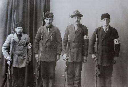 Vänster: Karl Enroth (Glasbäs Kalle), Arvid Jakobsson, Johannes Enlund, Anders Udd (senare Uddström), Vassor.
