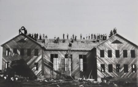 Taklagsfest på Kvevlax Ungdomsförenings hus 29 augusti 1949. Tomten köptes 12 januari 1949 av Ernst Ekholm och grundningsarbetet inleddes 13 januari, och invigningen av huset skedde 11 december 1949.