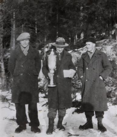 Vid Öjbergsspelen (skidor) vann femte ringen Vasabladets vandringspokal för alltid. Från vänster: Harald Pått, Felix Henriksnäs, Johannes Sjöström.