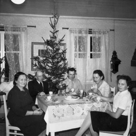 Emilia och Edvin Herrgård i Tranasbacken i slutet av 1950-talet. Höger: John, Sigrid Norrgård och Gunnel. Foto Vivi Norrgård.