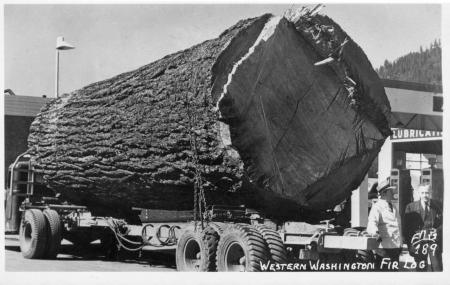 Amerikakort som emigranter skickade, eller hade med sig hem från Amerika. Otaliga österbottningar arbetade i de kaliforniska redwoodskogarna och fällde gigantiska tusenåriga stammar.
