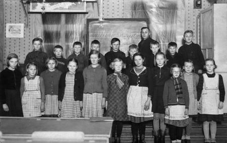 Österhankmo folkskola 1940-41 med läraren Gustav Albert Skägg överst. Nedre raden från vänster: Ruth Ståhlberg, Gunnel Frantz, Inga Johansson, Senni Henriksson, Hjördis Nordström, Aldi Jahnsson, Hildeborg Frilund, Gretel Sommardahl, Iris Ståhlberg, Gunvor Ingman. Övre raden: Sven Nygård, Bruno Sandkvist, Bertel Nordström, Albin Sundsten, Paul Frantz, Albin Granberg, Sven Dahl, Paul Björk, Albin Nygård.