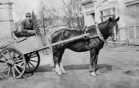 Rurik Råback på resa med Tommi till partiaffären i Vasa i slutet av 1930-talet.