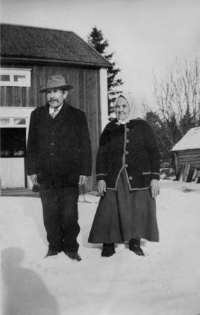 Alfred Häggström (Fjellarin) med Dina 1935. Gården fanns på samma sida (350 meter) norr om skolan/Österhankmo byagård.