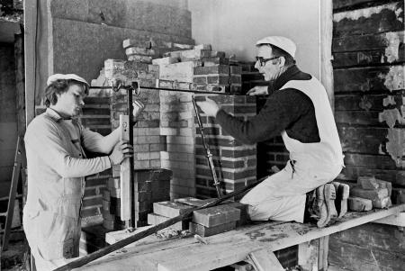 Anders och Kurt Näsman (far), murare från Västerhankmo. Bild från mitten av 1980-talet. Foto Mikael Herrgård.
