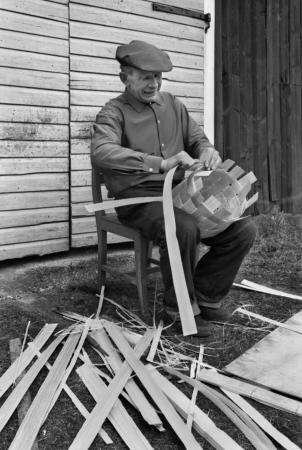Korgmakare Evald Frants i Koskö 1982. Foto Mikael Herrgård.