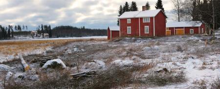 Svanvik. Nere på Viken gick kyrkvägsfarleden till Mussor-Vasa fram ännu under 1500-talet. I sluttningen har en åldrig stockskodd brunn dokumenterats. Söder om Viken har modern bosättning etablerats.Bild 2015. Foto Mikael Herrgård.