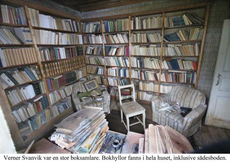 Svanvik. Verner Svanvik var en boksamlare av stora mått. Här fanns tex. Koranen i en utgåva från 1800-talet och mycket annat värdefullt i urval. Bild 2015. Foto Mikael Herrgård.