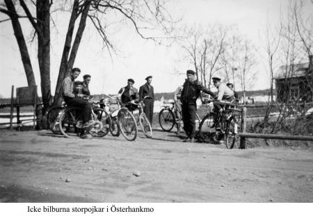 Icke bilburna storpojkars samling vid byvägen och Sandqvistas tået i Österhankmo, 1950-tal.