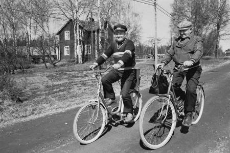 Österhankmovägen i maj 1981. Chauffören Roy Krus måste vända med bussen efter att först ha hämtat passageraren Robert Sundman med lånad cykel från ändhållplatsen vid Specialbutiken. Foto Mikael Herrgård.