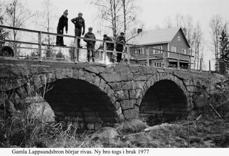 Gamla Lappsundsbron när rivningen inleddes 1976. Den fina stenbron byggdes 1877 av hankmoborna och ersattes av en ny betongbro efter hundra år. Foto Mikael Herrgård.