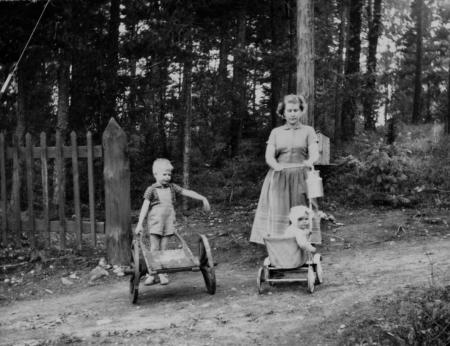 Olof Karsten (Rolfs son) med kärran från Kvevlax på Grönvik 1957.