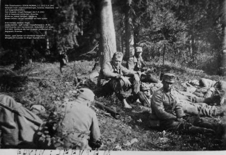 Edvin Ingman barfota i mitten på bilden (1912-41), Österhankmo. Stupade vid Säntämä.