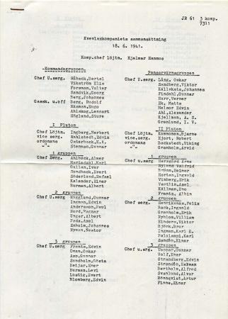 Kvevlaxkompaniets sammansättning 1. Kriget 1939-44.