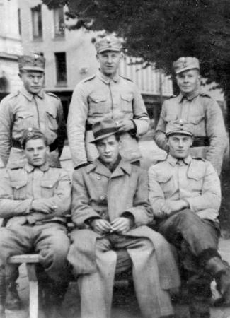 Sittande: Elis Hjort, Rolf Dahlqvist, Paul Hjortman (alla från Kvevlax). Stående: Nils Åman Vassor), Tor Sundvik (Västerhankmo), Erik Rabb (Kuni).